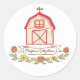 grange illustrée et fleurs décontractées jolies autocollants de mariage rustique - sceaux avec les noms de mariée et de marié.