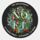 Des autocollants ronds personnalisés comportant le mot NOEL parmi des feuilles élégantes et des baies rouges, blanches et dorées avec votre nom et adresse en lettrage blanc chic courbé autour des bords. ARTICLES CORRESPONDANTS dans notre magasin.