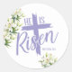 L'autocollant est présenté dans une impression de Pâques Il est ressuscité.