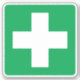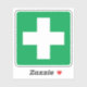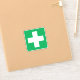 Stickers avec un symbole de premiers soins, une croix blanche sur un arrière - plan vert.