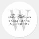 Autocollants de réunion de famille avec monogramme de nom élégant. Étiquettes ronds classiques pour la faveur ou comme enveloppes / scellants. Design de typographie de script élégant avec une lettre initiale monogrammée. stickers noir et blanc chic. Modèle personnalisé. Peut également être utilisé pour le baby shower de fantaisie, mariage ou douche nuptiale.