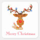Autocollant présenté avec une impression festive de Rudolph de Noël en lumières.