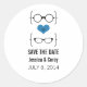 Autocollants de sauvegarde de date originaux et chics "Lunettes de Geek" représentant un cœur bleu royal flanqué de deux paires de lunettes de geek, une paire masculine et une paire féminine représentant le marié et la mariée. Ces autocollants de sauvegarde de date décalés mais sophistiqués sont parfaits pour annoncer votre mariage de geek ! Faciles à personnaliser, il suffit d'ajouter les détails de votre mariage dans les espaces prévus. Cliquez sur le bouton "Personnaliser" pour trouver des options de personnalisation supplémentaires.