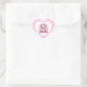 L'autocollant en forme de cœur est présenté dans un imprimé à pois rose et blanc avec un ours en peluche mignon qui dit "hug me" pour la Saint-Valentin.
