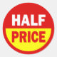 Demi-prix autocollants de vente au détail en blanc, jaune et rouge.