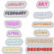 Cet ensemble d'autocollants comprend les 12 mois de l'année, parfait pour ajouter aux agendas, journaux et albums de scrapbooking. Restez organisé et élégant avec ces étiquettes mensuelles polyvalentes pour n'importe quel projet !