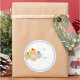 L'étiquette ronde de cadeau de peau et de bâton a l'arrière - plan blanc avec les petits gâteaux multicolores et un joyeux anniversaire écrit sur eux.