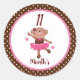 Autocollants du mois de bébé avec une jolie ballerine singe sur fond à pois blanc et marron
