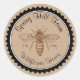 Dessin fait main d'une abeille au centre sur une texture de papier kraft faux au centre et une bordure festonnée vintage pour créer vos propres autocollants personnalisés pour les pots de miel de mariage et les fêtes prénatales.