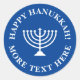 Autocollants et sceaux d'enveloppe personnalisés Joyeuse Hanukkah. Créez vos propres sceaux d'enveloppe personnalisés et sceaux de faveur de parti. Ajoutez votre propre texte autour du logo du chandelier à neuf branches. Modèle bleu et blanc pour les fêtes juives.