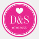 Autocollants faits sur commande de faveur de mariage d'arrière - plan de couleur. Autocollants roses et blancs au néon élégants de faveur de mariage de monogramme. Coeur mignon avec des initiales nommées décorées d'un monogramme des jeunes mariés plus la date du mariage. Personnalisé merci des autocollants, sauvez l'étiquette de date, les scelleurs d'enveloppe ou les joints de faveur. Typographie élégante pour des initiales de nom de jeunes mariés. Conception chic/conception de fantaisie. Couleur personnalisable d'arrière - plan. Conception romantique de thème d'amour. Autour de ou option carrée. Petite et grande option.