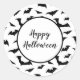 Un grand autocollant rond est présenté dans une empreinte de chauve-souris Halloween.