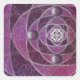 Un design en vitrail de spirales argentées et de tons de prune, sur un fond répétitif de fractales en spirale. Les spirales argentées convergent en un rose argenté, avec des pierres rondes pour accents.