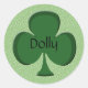 Des autocollants ronds et amusants de trèfle irlandais vert personnalisés, parfaits pour la Saint-Patrick, pour un garçon ou une fille irlandais, ou pour un mariage irlandais. Celui-ci montre le nom entièrement modifiable et personnalisable, Dolly. (Le nom peut également être supprimé.) Conçu par 369MyName.