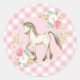 joli poney autocollants fête d'anniversaire avec plaid rose et floral