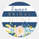 Ajoutez une touche personnalisée à vos cadeaux ! Ces autocollants ronds de 3" sont conçus pour correspondre à notre suite d'invitation de douche de mariée florale à rayures bleues marine.