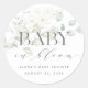 Incorporez le thème de votre baby shower à vos autocollants de cadeaux ou de scellage d'enveloppes avec notre autocollant rond classique rustique 'BABY IN BLOOM'.