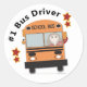 Nos autocars #1 sont équipés d'un autobus scolaire avec une conductrice et des étoiles autour du bus.