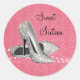 De jolis autocollants de chaussures à talons hauts rose et pailleté. Vous pouvez ajouter du texte pour personnaliser cet autocollant de chaussure à talons hauts en damassé rose.