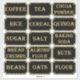 Gardez votre cuisine magnifiquement organisée avec cet élégant ensemble d'étiquettes de réserve en noir et or. Dotées d'une typographie classique encadrée dans une bordure raffinée, ces autocollants sont parfaits pour étiqueter les pots, les contenants et les boîtes. L'ensemble comprend des étiquettes pour les essentiels quotidiens comme le café, le thé, le sucre, le sel, la farine, le riz, les flocons d'avoine, les noix, le bicarbonate de soude, et plus encore — tous conçus pour apporter un style intemporel et de l'ordre à vos étagères. Idéal pour les cuisiniers à domicile, les boulangers et tous ceux qui aiment un garde-manger ordonné et coordonné.