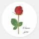 Rose rouge sur un autocollant avec le message "Je t'aime"