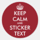 Autocollants ronds brillants | Restez calme et votre texte. Personnalisable modèle Keepcalm avec couleur et texte arrière - plan personnalisés. Thème vintage Keepcalmandcarryon. Créez votre propre calme et continuez votre parodie. Typographie rouge foncé et blanc avec couronne. Amusant pour les faveurs de fête ou comme enveloppes sceaux. Utilisation pour mariage, Anniversaire, baby shower, noël et plus d'occasions.
