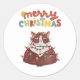 autocollants ronds classiques Joyeux Noël avec chat mignon.