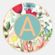 AUTOCOLLANTS RONDS PERSONNALISÉS FLEURS ET INITIAL
