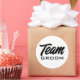 Autocollants ronds personnalisés pour l'équipe du marié. Conception personnalisée noir et blanc pour le marié et ses garçons d'honneur. Design élégant avec lettrage à la main pour les jeux d'enterrement de vie de garçon et plus encore. Créez-les pour votre groupe d'amis, invités, équipe, équipage, témoin, etc. Également disponible pour les équipes de mariées.