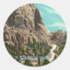 Carte postale vintage montrant l'autoroute pittoresque vers le Mont Rushmore dans la Forêt nationale de Black Hills dans le Dakota du Sud. Réimprimé sur ces autocollants.