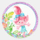 Autocollants troll avec un troll mignon à l'aquarelle sur un joli fond floral bleu violet et sarcelle. Ces autocollants troll mignons peuvent être personnalisés avec du texte et vous pouvez changer la couleur de fond.