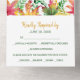 Ce faire-part de mariage moderne avec carte RSVP déchirante combine une bordure colorée de feuilles d'acacia d'automne avec la typographie à la mode. Les couleurs des feuille comprennent l'or, le rouge et le vert. Votre propre photo est montrée sur le rabat extérieur. Votre texte personnalisé est une combinaison de script manuscrit et de polices traditionnelles en or et vert foncé, et il y a beaucoup de champs pour vos informations. Si vous n'avez pas besoin d'un champ de texte, videz-le. Nous sommes toujours heureux d'aider, alors n'hésitez pas à nous envoyer un message si vous avez besoin d'aide. Si vous avez une réception sous forme de buffet, nous pouvons travailler avec vous pour reconcevoir la partie RSVP, alors n'hésitez pas à demander !