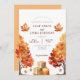 Mariage de automne Invitation présente des arbres de chute d'aquarelle et des cerfs à l'avant, au milieu d'une forêt condensée aux couleurs chaudes de l'automne.