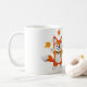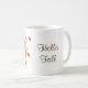 Tasse de café montrée avec une jolie feuille d'automne imprimé renard avec le texte de Hello Fall. Customisez cet objet ou achetez tel quel.