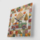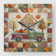 OEuvre murale rustique pour votre maison. Cette horloge murale de style agricole a un charme historique avec son vieux camion agricole qui transporte des Citrouilles. C'est Country Chic avec son aspect Patchwork Quilt. Les Citrouilles sont prêts pour la récolte, et les arbres sont dans leurs couleurs d'automne complètes. La surface composée est Faux et Simulée.