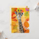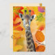 Photo d'une girafe à l'aspect soyeux avec quelques illustrations de feuilles d'automne réunies pour faire une belle et unique carte