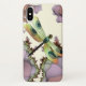 Ce Coque Dragonfly iPhone X présente une copie de ma peinture originale d'aquarelle d'une libellule sur un arrière - plan fractal art numérique.