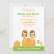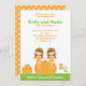 Belle invitation avec deux princesses de fées sur un citrouille. Parfait pour les anniversaires sur le thème de la chute pour les jumelles.
