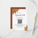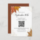 Ajoutez une touche d'élégance saisonnière à votre mariage d'automne avec cette carte d'encart mariage de automne RSVP. Doté de délicates feuilles de chute d'aquarelle, cette carte de réponse mariage allie beauté naturelle et fonctionnalité moderne. Le code QR inclus permet aux clients d'accéder facilement à votre site Web mariage et de répondre en ligne. Cette carte de réponse élégante et élégante est le complément parfait à votre suite de papeterie mariage sur le thème des chutes.