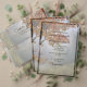 Une photo rustique de feuilles d'automne dans une forêt. Ce menu mariage fait partie d'un ensemble complet.