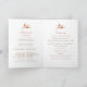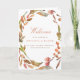Un programme mariage de automne élégant avec une police de script et une couronne d'aquarelle composée de feuilles en terre cuite, brun et vert. Personnalisez tout le texte pour vos besoins.