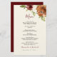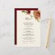 Menu Floral Mariage de l'automne Maroon - avec écriture manuscrite orange avec aquarelle luxuriante feuilles de rose, fleurs bordeaux et orange, roses blanches sur l'arrière - plan vintage de couleur ivoire. Le revers de cette carte de menu automne est marron.