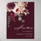 Ce panneau d'accueil pour la douche nuptiale présente un bouquet de fleurs d'aquarelle de dahlias, de roses de jardin et de pivoines en rouge bordeaux, marron, rose roux sur les feuilles d'automne. Pour une personnalisation plus avancée de cette conception, cliquez sur le BOUTON OUTIL DESIGN BLEU. Des articles correspondants sont également disponibles.