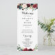 Ce programme de mariage de calligraphie rustique bordeaux est parfait pour un mariage moderne. Le design est composé de fleurs bordeaux, rouges, navales, bleues et rousses rayonnantes et gracieuses peintes à la main, inspirant la beauté naturelle.