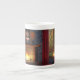 jolie porcelaine, bonne dimension effet brillant bien dans l'ensemble. Le motif et les couleurs sont réussis.Je trouve néanmoins dommage de ne pas occuper tout l'espace avc le motif car la partie rouge au dos de la tasse est trop présente et pas intéressante visuellement.