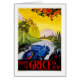 La vieille affiche de voyage de langue française favorise la Grèce et montre l'image routes de déplacement de voiture de vieilles. Plus lumineux, plus vibrant, et plus audacieux !