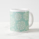 Une tasse lumineuse et amusante pour l'hiver pour tous vos chocolats chauds d'hiver, café, même soupe ou chili! Cette tasse de spécialité jumbo présente un joli bleu aqua avec des cercles de flocon de neige.