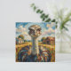 Une carte de vœux vierge mignonne pour penser à vous pour un ami ou un membre de la famille avec un gros plan impasto d'une autruche dans un ranch.