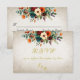 The Autumn Floral & Wreath RSVP - Cream features a botanical wreath, bride & grooms first initials and a wildflower bouquet in the beautiful colors of autumn on a vintage cream background. The back has details for the recipient to fill out. Designed to coordinate with the "Floral & Foil Botanical Wreath" Wedding Collection. To change details, click «Personalize». To move the text or change the text size, font, or color click «Click to customize further» initials