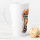Warm autumn café storefront with vibrant orange leaves, books visible through the window, outdoor chairs and a cat sitting by the entrance. A charming seasonal Tasses for book lovers, teachers, students, and fans of cozy fall reading culture